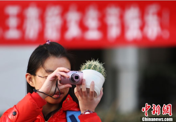 3月7日,清華大學(xué)的一位女生收到了自己的“女生節(jié)”禮物——仙人球