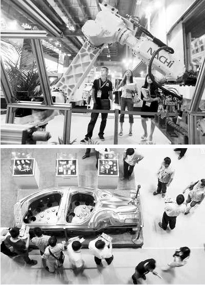 5月9日,由重慶市人民政府、中國機(jī)械工業(yè)聯(lián)合會主辦的第13屆立嘉國際機(jī)械展在重慶國際會展中心開展。展會吸引了海內(nèi)外900余家知名企業(yè)參展,展出面積達(dá)4.5萬平方米,其中境外展商比例占了40%。圖為觀眾正在觀看展品。(來源:新華社)
