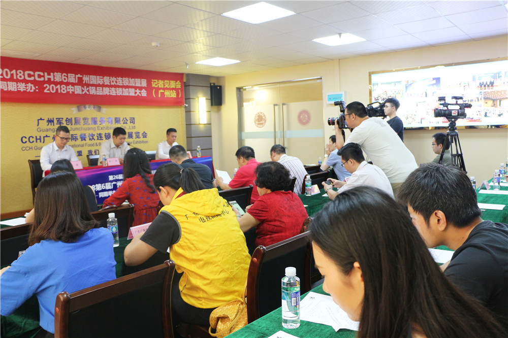 2018第6屆CCH廣州國(guó)際餐飲連鎖加盟展覽會(huì)(以下簡(jiǎn)稱:CCH廣州餐飲連鎖展),繼6月28日成都新聞發(fā)布會(huì)后,于7月18日在廣州再次舉辦記者見(jiàn)面會(huì)。以廣州市協(xié)作辦室展貿(mào)處楊一航處長(zhǎng)為代表的主辦方單位領(lǐng)導(dǎo)、CCH廣州餐飲連鎖展創(chuàng)始人鄭軍志先生、廣東經(jīng)濟(jì)科教頻道【今日一線】、南方日?qǐng)?bào)、廣州日?qǐng)?bào)、鳳凰新聞、中新社等重量極媒體進(jìn)行了現(xiàn)場(chǎng)報(bào)道。