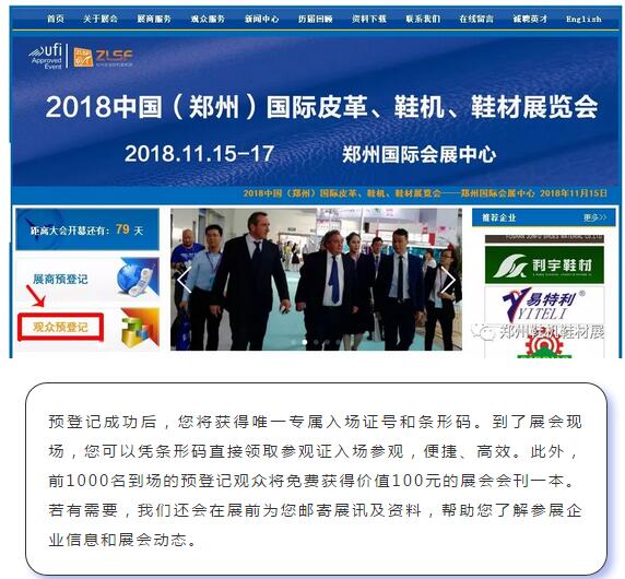方式三:登錄鄭州國際皮革、鞋材、鞋機(jī)展官網(wǎng)http://www.qdlsm.com/進(jìn)行預(yù)登記。