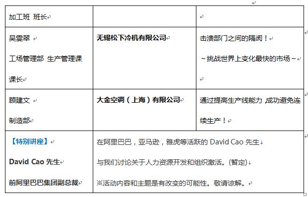 延續(xù)在日本舉辦30余年以來的傳統(tǒng),GMCA論壇曾于日本福岡、名古屋、仙臺以及泰國曼谷舉辦多次并大獲成功。我們將會邀約各個行業(yè)龍頭企業(yè)活躍在制造現(xiàn)場的一線監(jiān)督員通過分享實(shí)踐管理的經(jīng)驗(yàn)以及日本各大知名企業(yè)高層作為評審員對優(yōu)秀企業(yè)進(jìn)行表彰,更有中日兩國優(yōu)秀個例交流活動,希望通過此次活動展示交流更優(yōu)秀的制造業(yè)管理水平、更先進(jìn)的制造業(yè)現(xiàn)場技術(shù),旨在通過分享探討,使中國制造業(yè)能夠通過智能制造以及高新技術(shù)的快速發(fā)展,提升并加快企業(yè)的轉(zhuǎn)型升級!