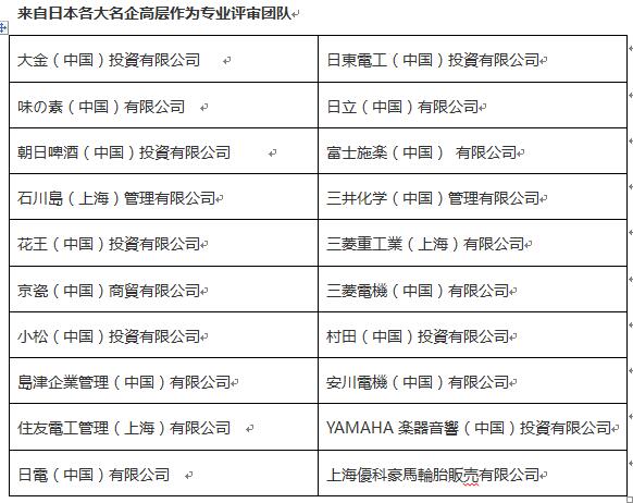 奧林巴斯株式會社、卡特彼勒公司、KMEW有限公司、神戶制鋼所、JFE鋼鐵株式會社、索尼半導(dǎo)體制造公司、大金工業(yè)株式會社、大發(fā)工業(yè)株式會社、電裝公司、TOTO株式會社、豐田汽車公司、日產(chǎn)汽車株式會社、日本信號株式會社、日立金屬投資有限公司、本田科技工業(yè)、馬自達(dá)株式會社、雅馬哈發(fā)動機(jī)株式會社、雅馬哈公司