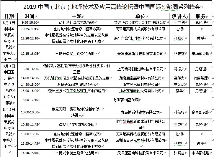 為加快地坪行業(yè)新技術(shù)、新材料、新工藝的推廣和應(yīng)用,增進(jìn)地坪與砂漿行業(yè)的跨界合作與交流,展會期間組委會將聯(lián)合中國室內(nèi)裝飾協(xié)會施工委員會、中國砂漿網(wǎng)等機(jī)構(gòu)共同舉辦2019中國(北京)地坪技術(shù)及應(yīng)用高峰論壇暨2019中國(北京)砂漿與地坪合作交流大會。具體議程如下: