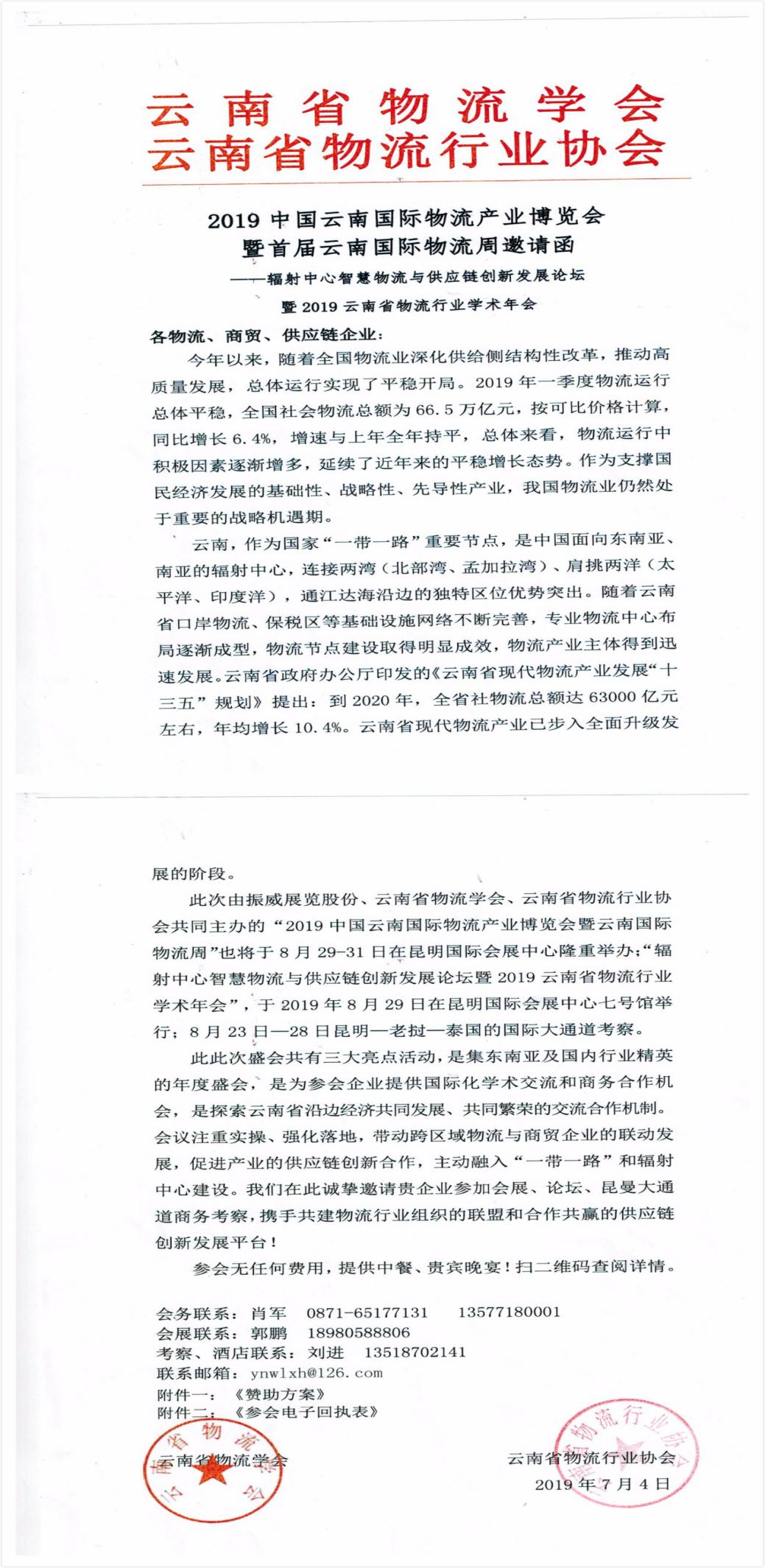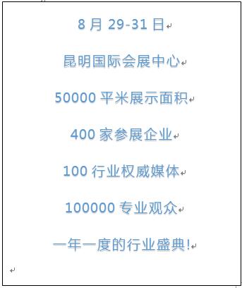 由中國國際商會云南商會、振威展覽股份、云南省物流學(xué)會、云南省物流行業(yè)協(xié)會聯(lián)合主辦,云南省維修行業(yè)協(xié)會商用車分會協(xié)辦,昆明市發(fā)展和改革委員會、昆明市工業(yè)和信息化局、昆明市商務(wù)局、昆明市交通運輸局、昆明市科學(xué)技術(shù)局、昆明市城市管理局、昆明市環(huán)保局 云南機場集團(tuán)有限責(zé)任公司、云南路橋股份有限公司、云南省電力行業(yè)協(xié)會支持,成都振威世展展覽有限公司承辦的2019云南國際物流產(chǎn)業(yè)博覽會暨云南省國際物流周將于8月29日在昆明國際會展中心盛大召開!