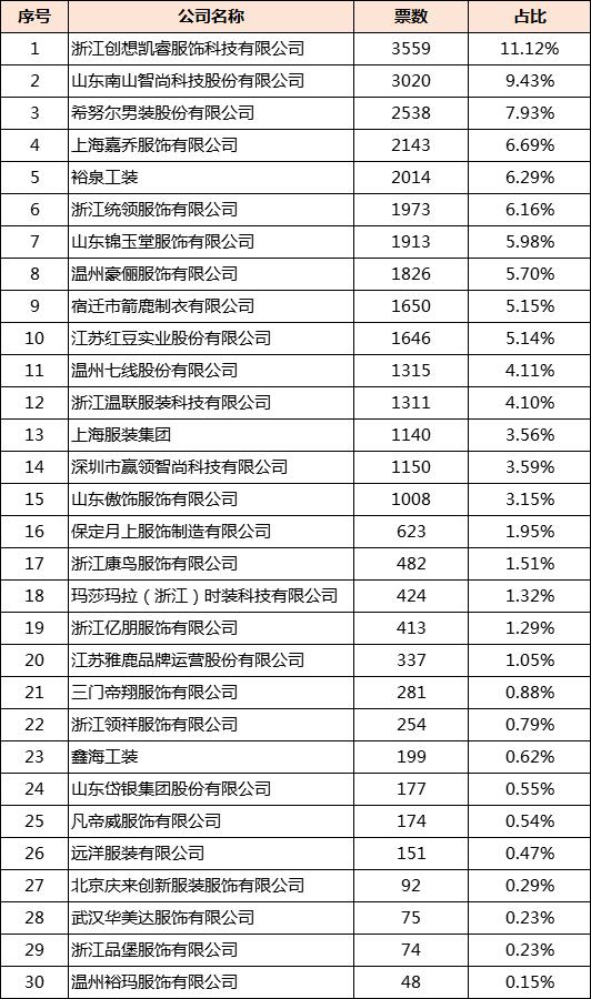 活動(dòng)自舉辦以來(lái),得到了許多職業(yè)裝企業(yè)的熱烈反響,報(bào)名者絡(luò)繹不絕。5月28日至6月28日,網(wǎng)絡(luò)投票,網(wǎng)絡(luò)投票評(píng)分占總分值10%,現(xiàn)公布網(wǎng)絡(luò)投票結(jié)果: