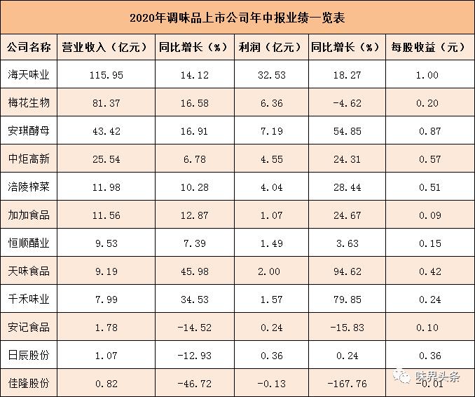 2020年上半年,12家調(diào)味品上市公司的營(yíng)業(yè)收入總額為320億元,凈利潤(rùn)總和為61億元。