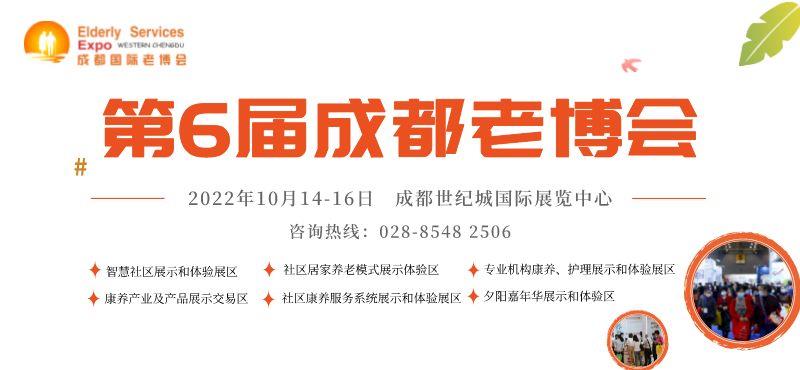 總要去趟成都吧,在金秋十月中相遇,看看這里的養(yǎng)老生活,體驗(yàn)一回浪漫的養(yǎng)老之行。2022年10月14-16,在成都世紀(jì)城國(guó)際展覽中心,第6屆成都老博會(huì)期待您的到來(lái)。本屆成都老博會(huì)相關(guān)信息可以通過(guò)成都老博會(huì)官網(wǎng)http://ed.healthcareexpo.cn/、官方微信公眾號(hào):成都老博會(huì)