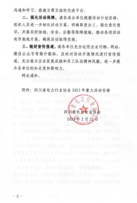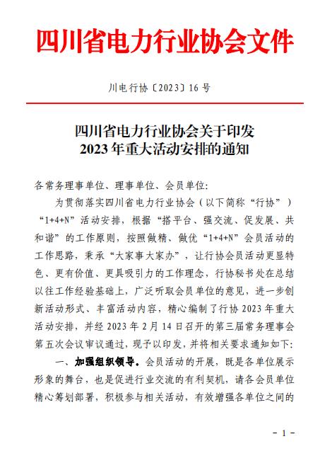 2月22日,四川省電力行業(yè)協(xié)會(簡稱“行協(xié)”)印發(fā)2023年工作計劃和重大活動安排。2023年,行協(xié)將全面貫徹落實黨的二十大報告中提出的調(diào)整能源結(jié)構(gòu)、加快規(guī)劃建設(shè)新能源體系,確保能源安全等要求,全面發(fā)揮好協(xié)會平臺、橋梁、紐帶、主體等功能,著力開展10項以上重要活動。