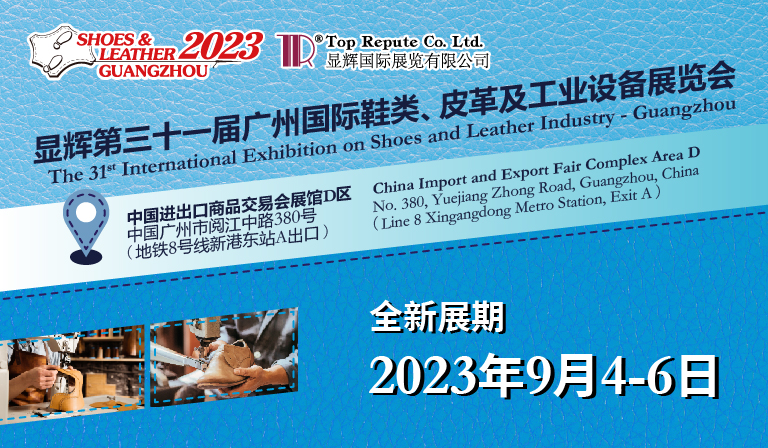 「顯輝第三十一屆廣州國(guó)際鞋類、皮革及工業(yè)設(shè)備展覽會(huì)」煥新啟航,將于2023年9月4-6日在廣交會(huì)展館D區(qū)(18.1 -20.1)舉辦,誠(chéng)邀您在全新的展期再聚全新的展館,共襄顯輝廣州盛會(huì)!