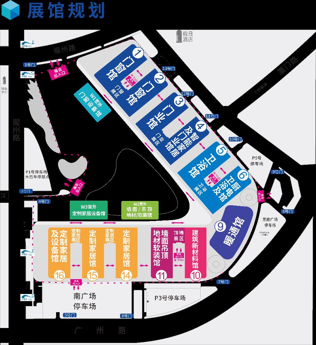 本屆展會規(guī)模再度升級,展覽面積擴增至160000㎡,其中包含12個展館 +6個連接館+2個室外館展示。1、2、 3、4號為門窗館及智能家居展區(qū);5、6號為衛(wèi)浴館及廚電展區(qū);9號為暖通館;10號為建筑新材料館;11號為墻面吊頂、地材軟裝館;14-16號為定制家居館;室外2個定制設(shè)備館。