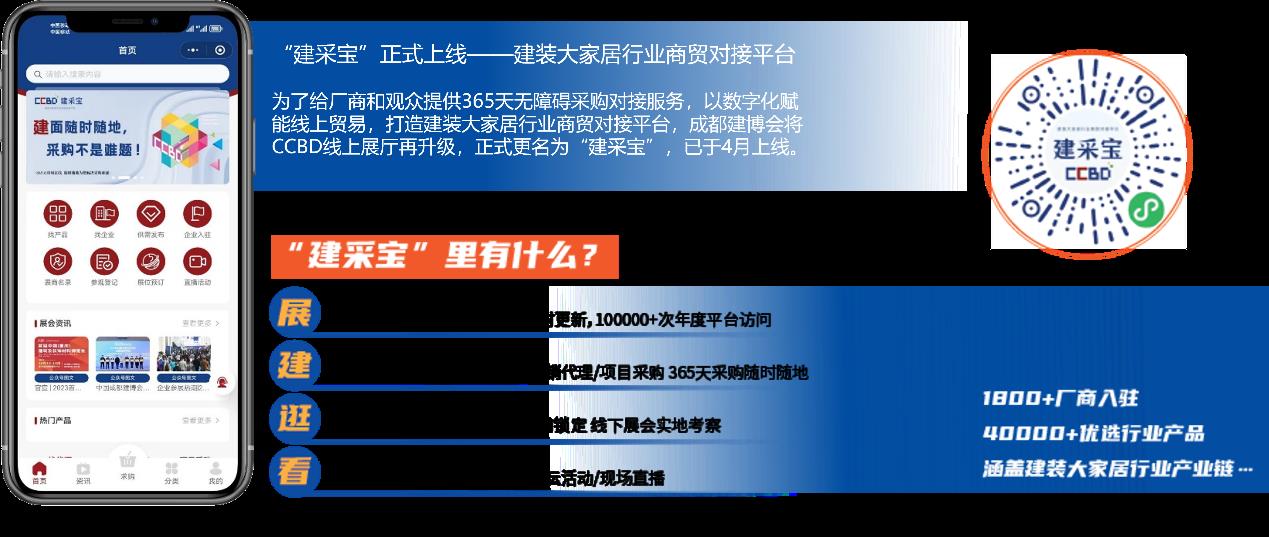 線上搭建線下展會配套展示平臺——建采寶,每年超100,000次觀眾訪問量,365天貿(mào)易不停歇,為企業(yè)和觀眾之間建立全新的互動渠道。